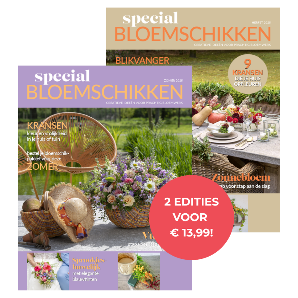 Ontdek de veelzijdigheid van bloemstyling met Special Bloemschikken. Van verse seizoensbloemen en eigen oogst tot de nieuwste trends in droog- en zijdebloemen: wij brengen de natuur bij je binnen. Dankzij duidelijke stap voor stap instructies en professionele tips creëer je moeiteloos een ‘wauw-effect’, ongeacht je ervaring of budget. Profiteer nu van onze tijdelijke introductie-actie en maak voordelig kennis met hét magazine voor elke bloemenliefhebber.