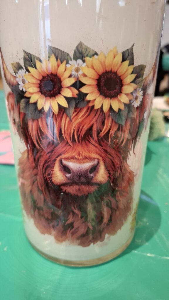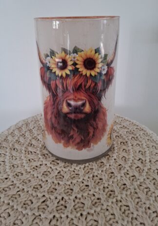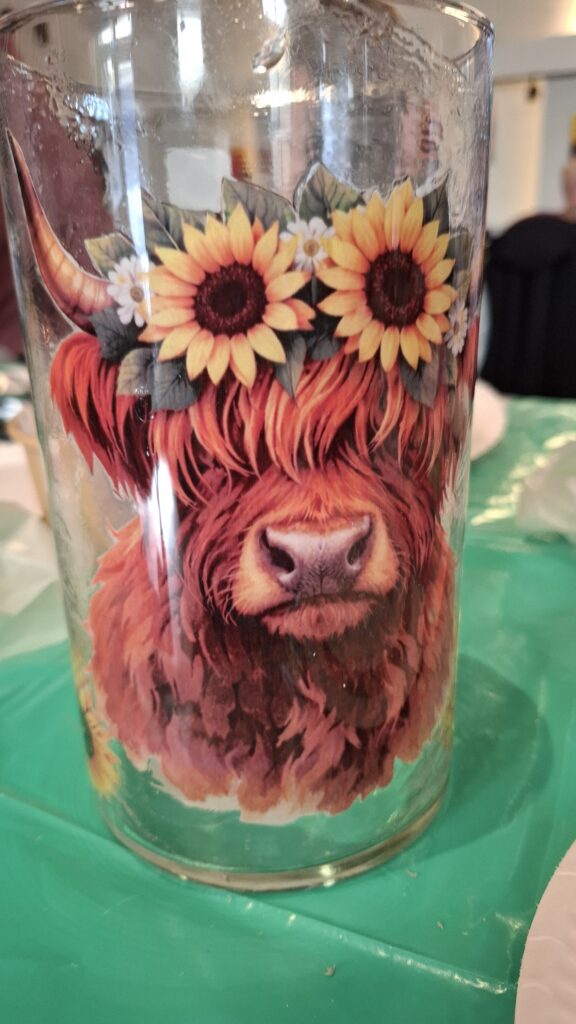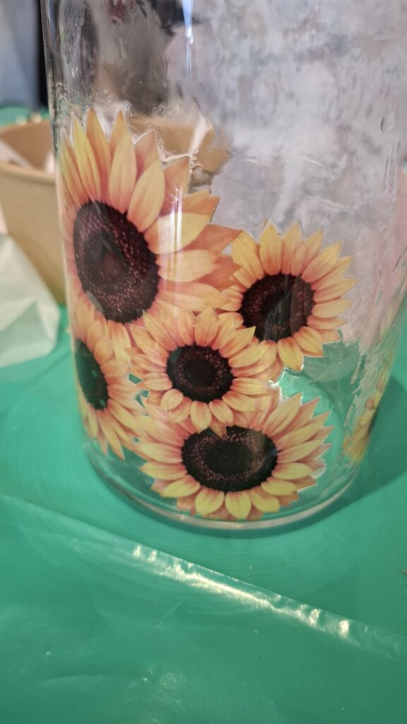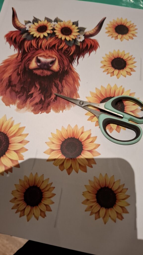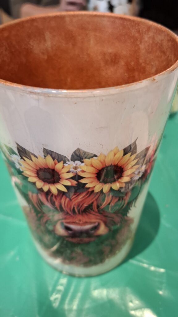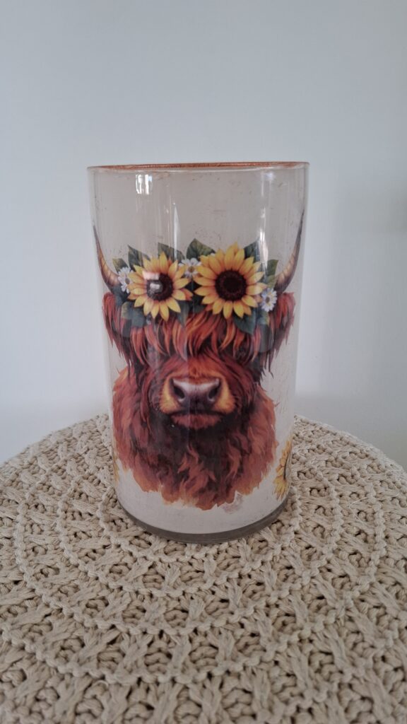 Het plaatje kun je dus zelf uitprinten met een laserprinter. Dan kun je ook de grote aanpassen aan je vaas. Met een andere printer is niet verstandig ivm. het door elkaar lopen van de kleuren als je de lijm er op aan brengt.