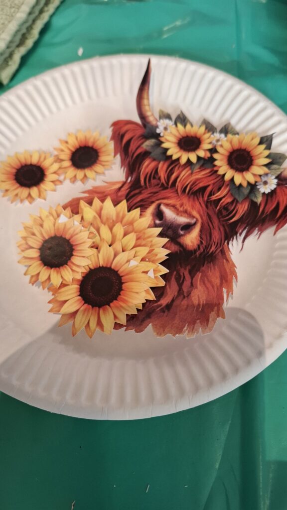 4. Nu is het tijd voor het plaatje, neem de kwast en smeer het plaatje OP DE VOORKANT in met decoupagelijm. LET OP…. op de voorkant van het plaatje NIET de achterkant)