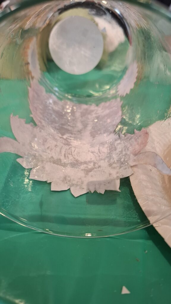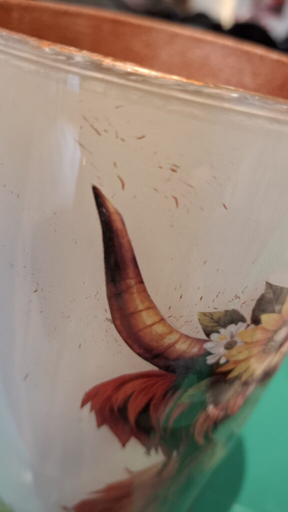 7. Als je alles goed hebt ingesmeerd wordt het tijd om te drogen, heb je veel geduld dan zet je hem weg. Maar een snellere oplossing is de föhn om lauw warme stand. Niet heet, dan knapt de vaas. Zorg dat alles goed droog is en er niets meer plakkerig aanvoelt.