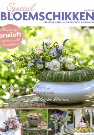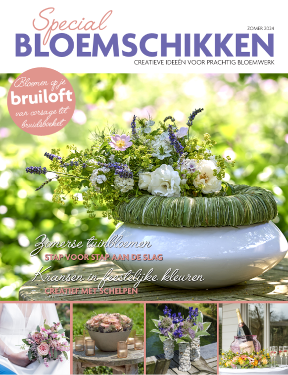 Ontdek Special Bloemschikken zomer 2024: In dit nummer vergeten we het natte voorjaar en dromen we van zonovergoten dagen vol vakantieherinneringen. Breng het strand in huis met de mooiste creaties van schelpen of ga aan de slag met een vers geplukt assortiment uit eigen tuin. Of je nu kiest voor felle kleuren of zachte pasteltinten; onze bloembinders inspireren je met de meest uiteenlopende schikkingen. Daarnaast dromen we weg bij een sprookjesachtig huwelijk waar romantiek en roze tinten hand in hand gaan.